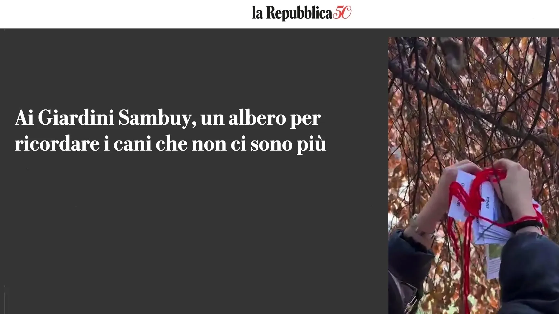 “A Torino, ai Giardini Sambuy, un grande faggio pendulo è stato trasformato in Dog Memorial Tree…”