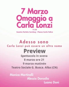 Omaggio a Carla Lonzi “Adesso sono. Carla Lonzi può essere un altro nome”