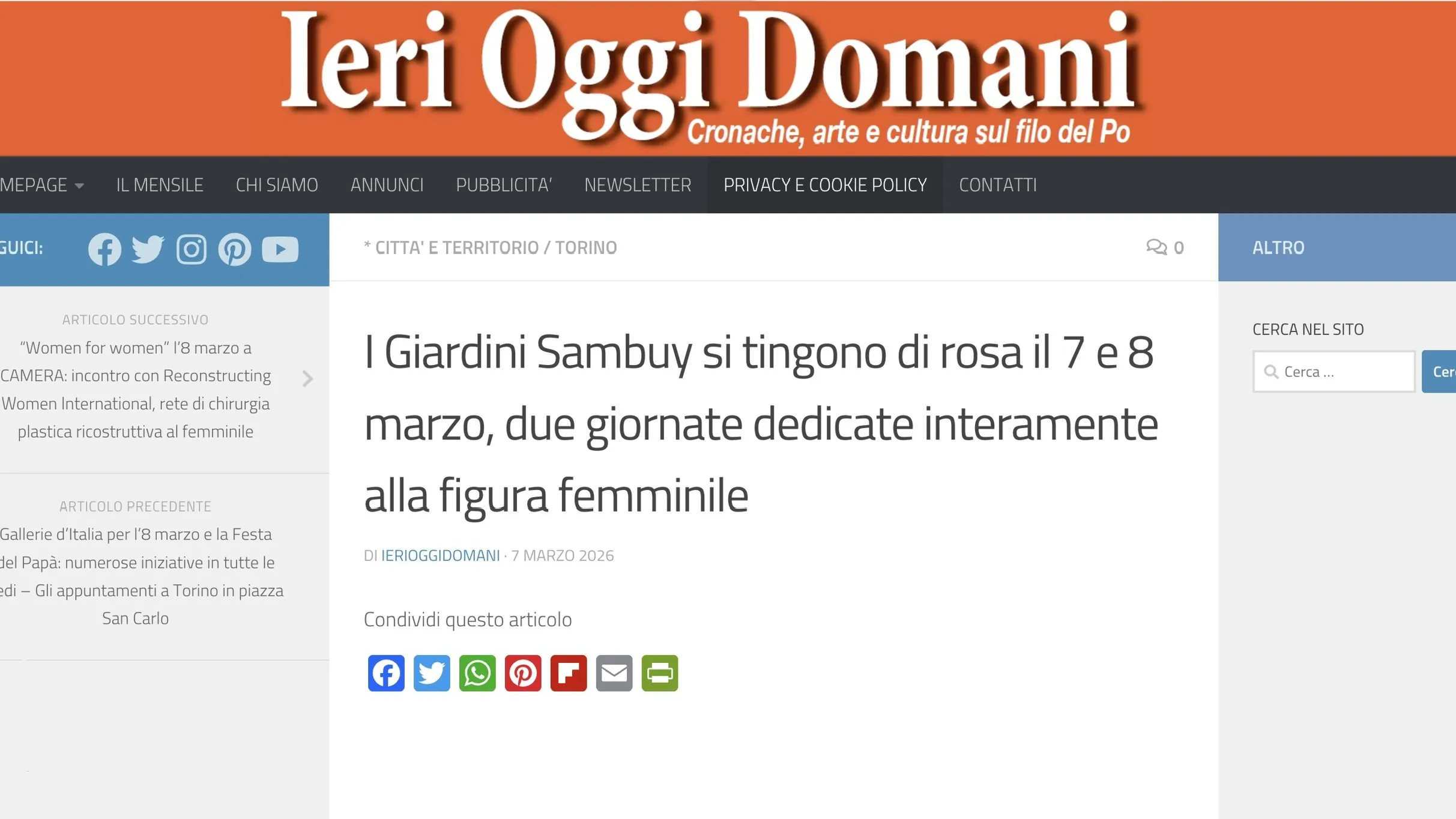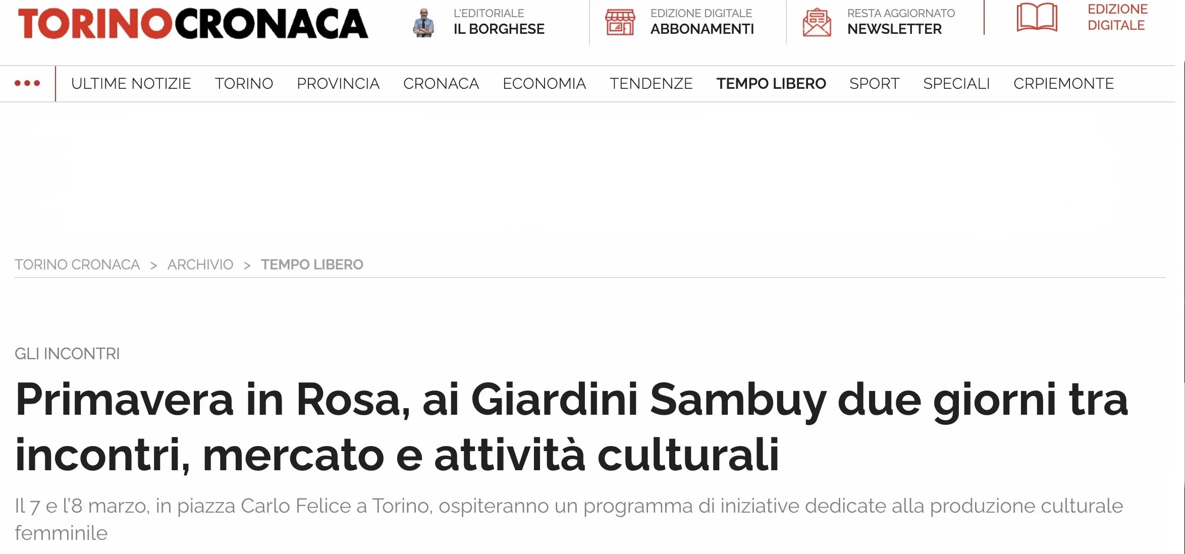 I Giardini Sambuy si tingono di rosa il 7 e 8 marzo, due giornate dedicate interamente alla figura femminile
