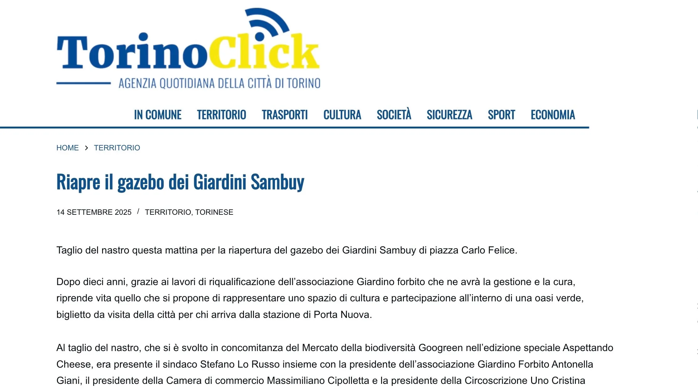 Riapertura del Gazebo dei Giardini Sambuy: un nuovo capitolo per il parco urbano di Torino